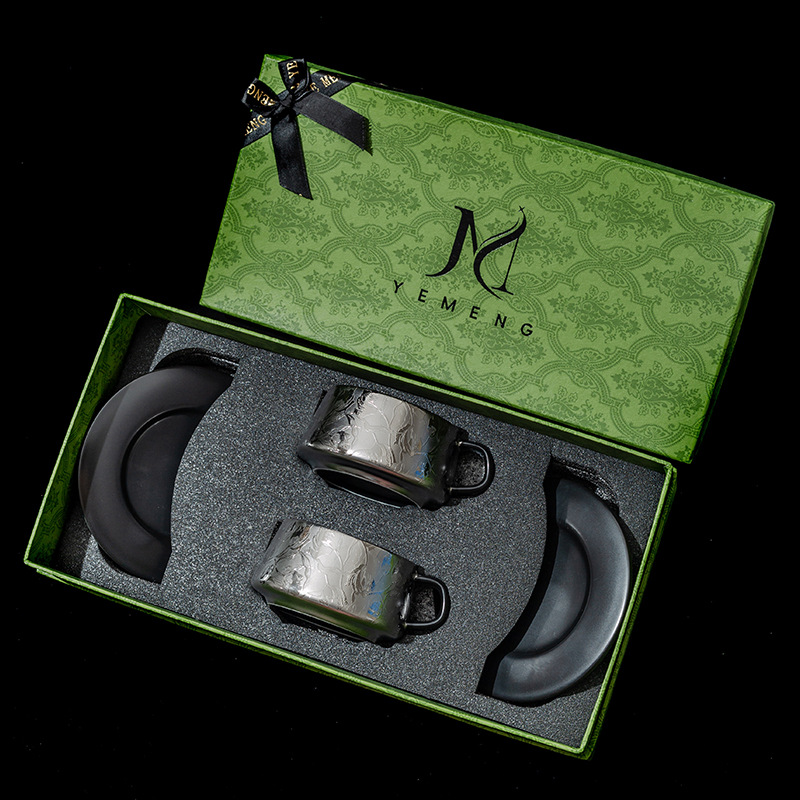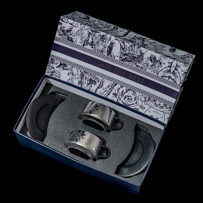 This Titanium Ceramic Coffee Cup Gift Set includes two sets of titanium-coated cups and saucers. Select your preferred gift box color for a truly classy gift!